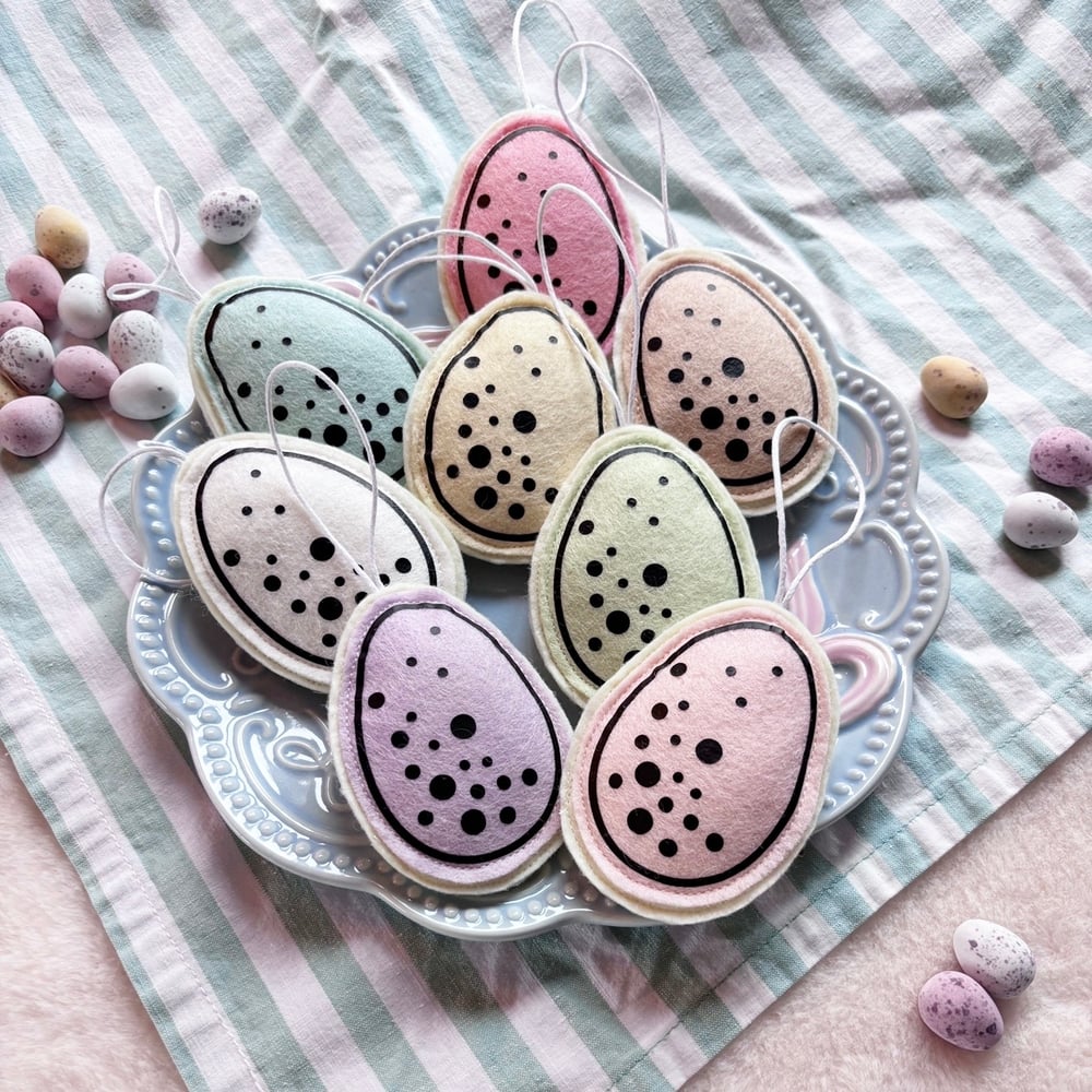 Add a soft pastel touch to your Easter and spring décor with these adorable handmade felt mini egg decorations. Each egg features delicate speckled detailing and comes with a hanging loop, making them perfect for Easter trees, garlands, baskets, gifts, or seasonal displays.