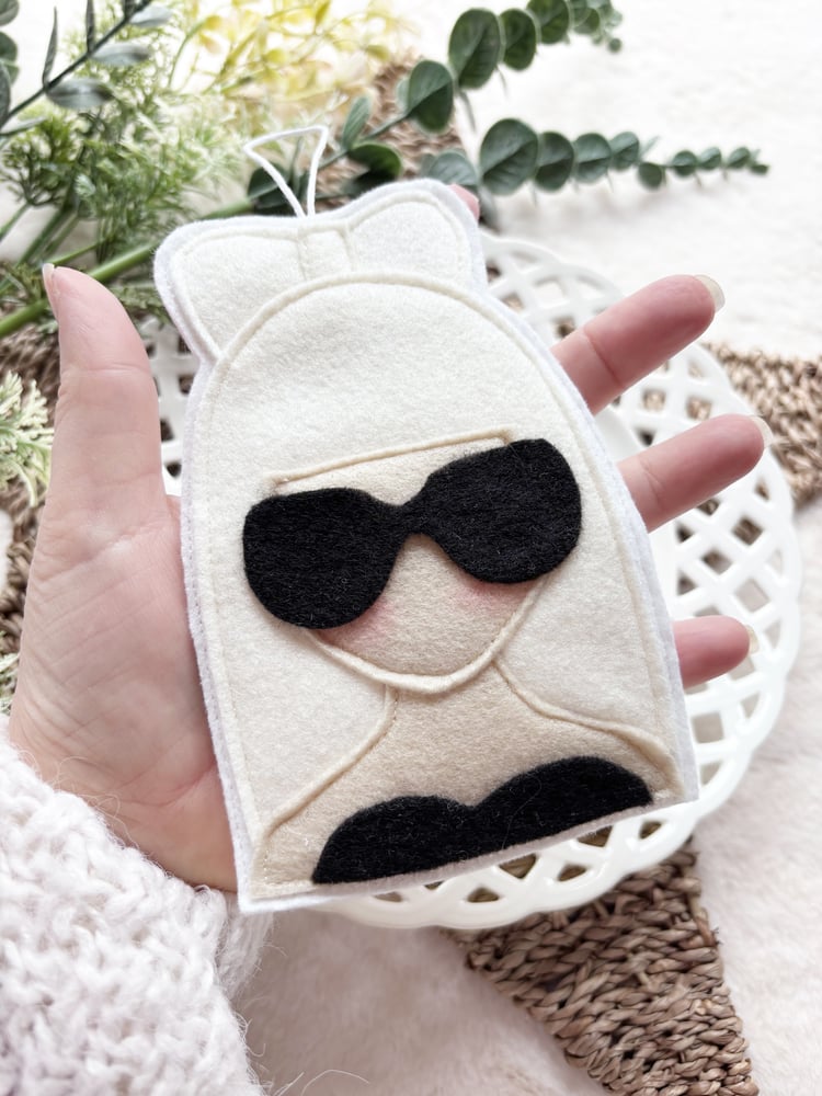 Made in best quality felt, unstuffed and hung with a white cord loop